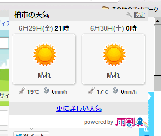 そんな天気予報を確認するのに 雨割forChrome というプラグインを使っています。 image
