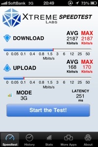 んでこちらがソフトバンクの3Gのケース。基地局から外れると復帰に時間がかかりそうですがそれなりにというか十分普通です。まあトンネルとか郊外だとこうもいかないかもしれませんが。