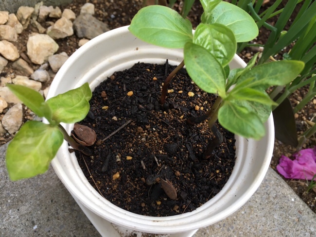 子供が適当に植えた柿の種が次々と芽が出てきた。柿は渋柿が優勢遺伝子で甘柿は突然変異らしい。たしかに店で見ると全部接ぎ木されている。育てたいというが7年後食べてくれるのか、、