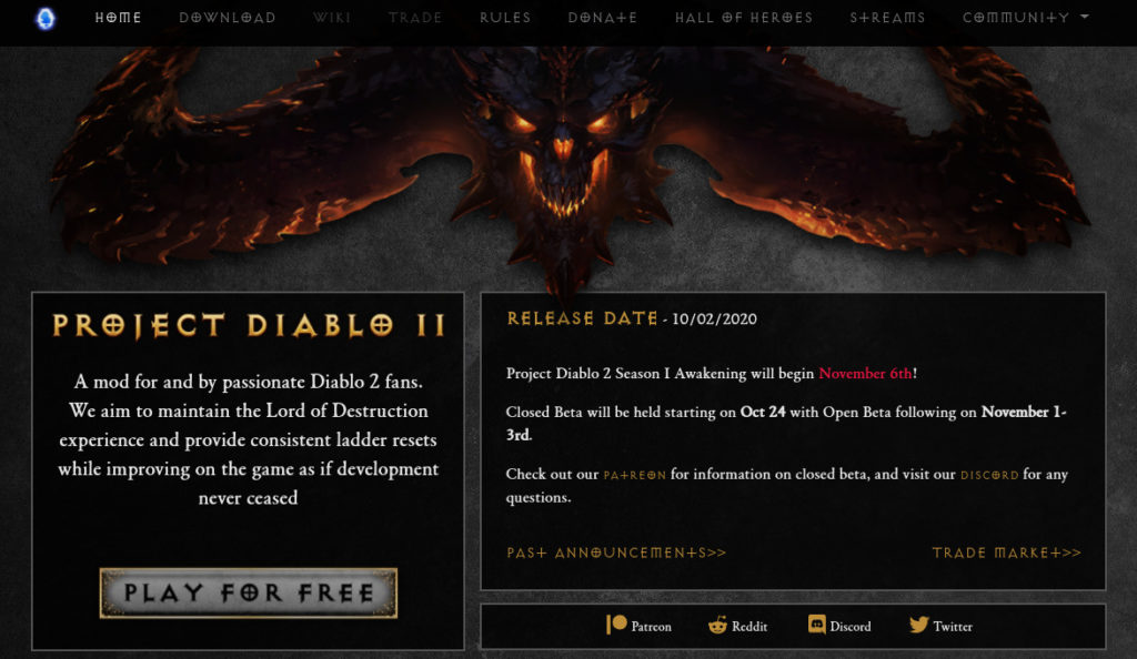 Diablo2はまだまだ熱狂的なファンがいるようで、未だにBNにつなぐとユーザがいて驚く、そしてまだ新しいMod(Diablo2を改造したもの)を搭載したプライベートサーバが出ておりDiscordではユーザが盛り上がっている。まるで17年前にタイムトリップしたかのような気分だ。 新作の「Project Diablo II」はなんと2020年11月6日から始まる! 密かに楽しみにしている。