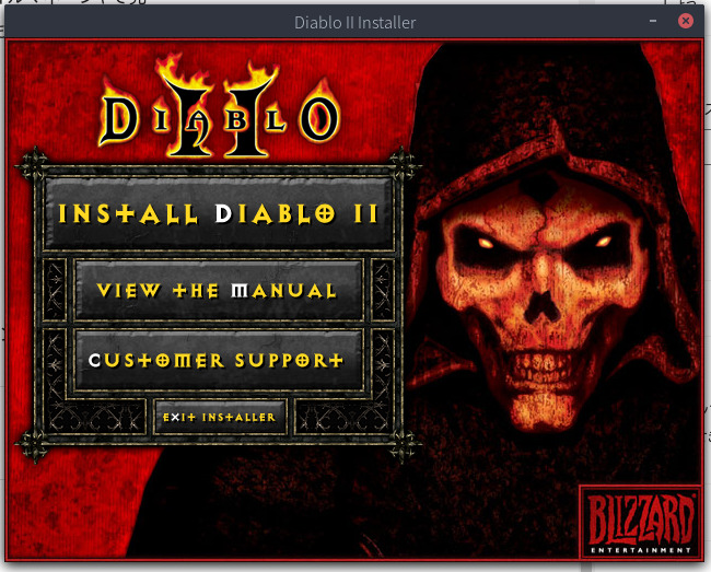Diabloは32Bit環境で動作するため、上記ように指定をおこない動かします。上記では .wine_pd2 という閉じられた環境になります。Wineの良い点はアプリ単位でこのようにクリーンなWindows環境で動かすことができることです。(レジストリなども完全に別になるのでLinuxでWineを使うときにはアプリについてはなるべくこのように環境を分けることが望ましいです。