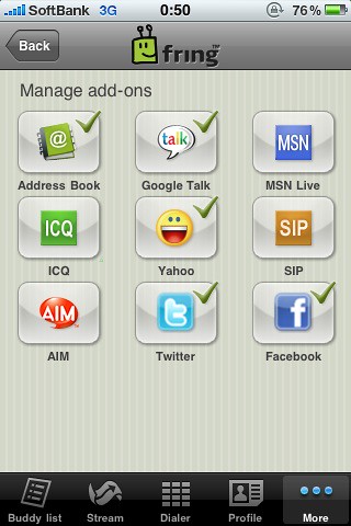 以前は、FringといえばSkypeとか様々なIMが統合されているアプリで素敵だった。