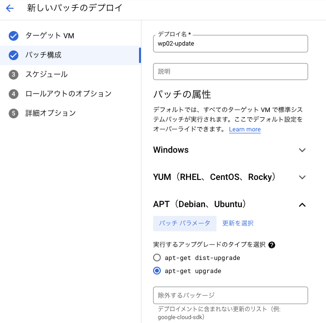 GCEでは、apt update を自動的に実施するためのサービスが提供されていますのでこちらを設定してみます。