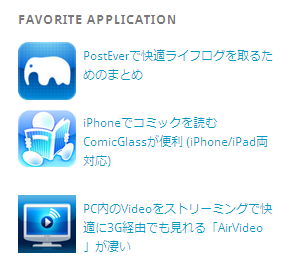 ちょっとサイドメニューに過去の記事から普段使っているおすすめアプリの紹介リンクを作ってみた。