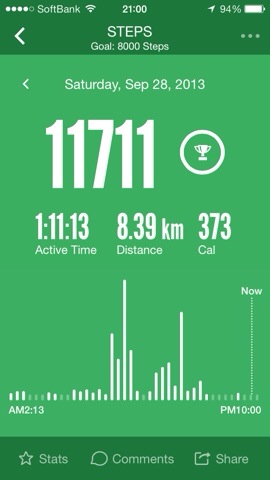 iPhone5sとiOS7のモーションアクティビティがすごい。本格的に歩数計が使える。