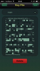探してみるとiTerminal というのがあったのでこれを使い始めました。これは秘密鍵を登録できるので便利です。登録も何かからImportするのではなくてテキスト貼り付けでできるので楽ちんです。