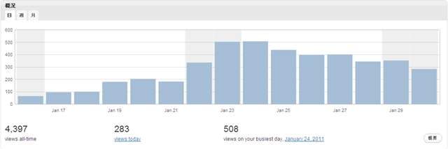 さてもう一目瞭然(グラフの縦の軸が10培違いますので注意)ですね。(1)の方はわずか2週間程度で500pv/日を推移していますがかたや(2)は50pv/日が最高でほとんどアクセスが有りません。ブログの内容は、様々な記事のリンクを拾ってきているので相手がWordpressの場合にはピンバックが行われていると思うのですが。